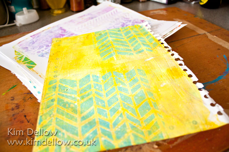 I’ve used fabric and old book pages too, so there are lots of things you can print onto with this technique. My gelatine plate is still working, but I think I will probably only get one more session out of it before I need to make a new one.