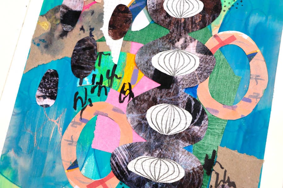 You have two very different exercises to try this month in the studio. The first exercise will lead you through a mindful sketchbook or art journal practice. Again focusing on following your own lead and discovering what is sparking your creativity at the moment.