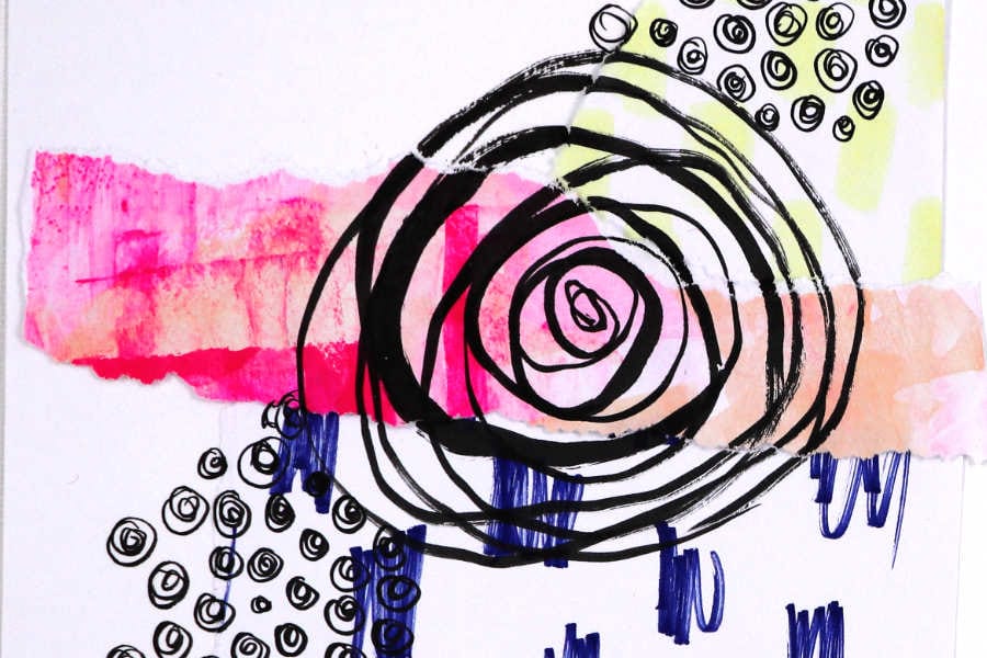 I really wanted to get us stretching how we use our mark-filled pieces of paper and I love exploring the idea of patterns and graphic marks matched with organic subjects. Which in this case is a duck, as you might have guessed!